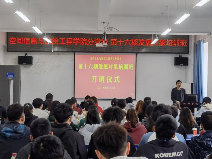 4月22日上午,必赢线路检测3003no1在北512报告厅举行学院分党校第十六期发展对象培训班开班典礼。学院党委书记范洪喜、党委副书记孟静、培训班班主任、辅导员和发展对象70余人参加了开班典礼。