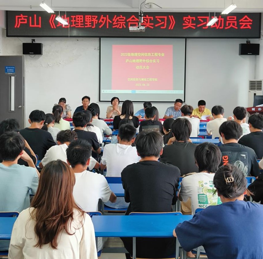 6月23日上午,必赢线路检测3003no1在北512报告厅召开《地理野外综合实习》实习动员会,院长余学祥教授、党委副书记孟静、副院长王磊教授、实习指导老师杨震和王世航、辅导员常凤姣、地理空间信息工程专业2022级全体同学参加动员会,动员会由王世航主持。