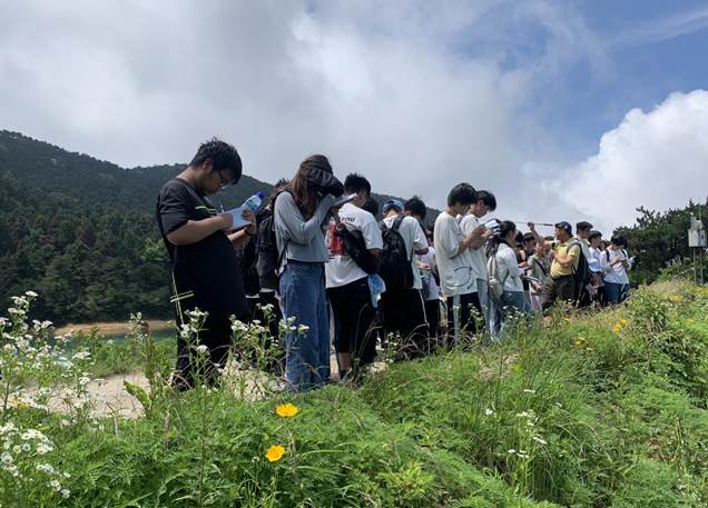 野外实习,面对的是基础知识积累和体力耐力的双重考验。每天清晨,整装待发的师生从小天池出发,跋山涉水、翻山越岭、餐风饮露,用脚步丈量着雄奇险秀的庐山。潮湿雾重,搭上泥泞的山路;烈日高悬,却遇漫长的石阶;风雨交加,伴随骤降的气温。而他们不惧风雨,不畏骄阳,不怕吃苦,通力合作,紧密地团结在一起,用坚定的意志战胜眼前的考验,征服了一个个高险耸立的山峰和深不可测的峡谷。勇敢前行的信念攻破了眼前的险阻,同学们即增长了见识,也培养出羁绊,彼此的情谊变得更加亲厚。跋涉的过程中同学们也感悟着人生的哲理:无论是科学探索,还是个人人生,船到中流浪更急,山到中途路更陡,然关关难过关关过,步步难行步步行,只要齐心协力,便能克险攻坚。