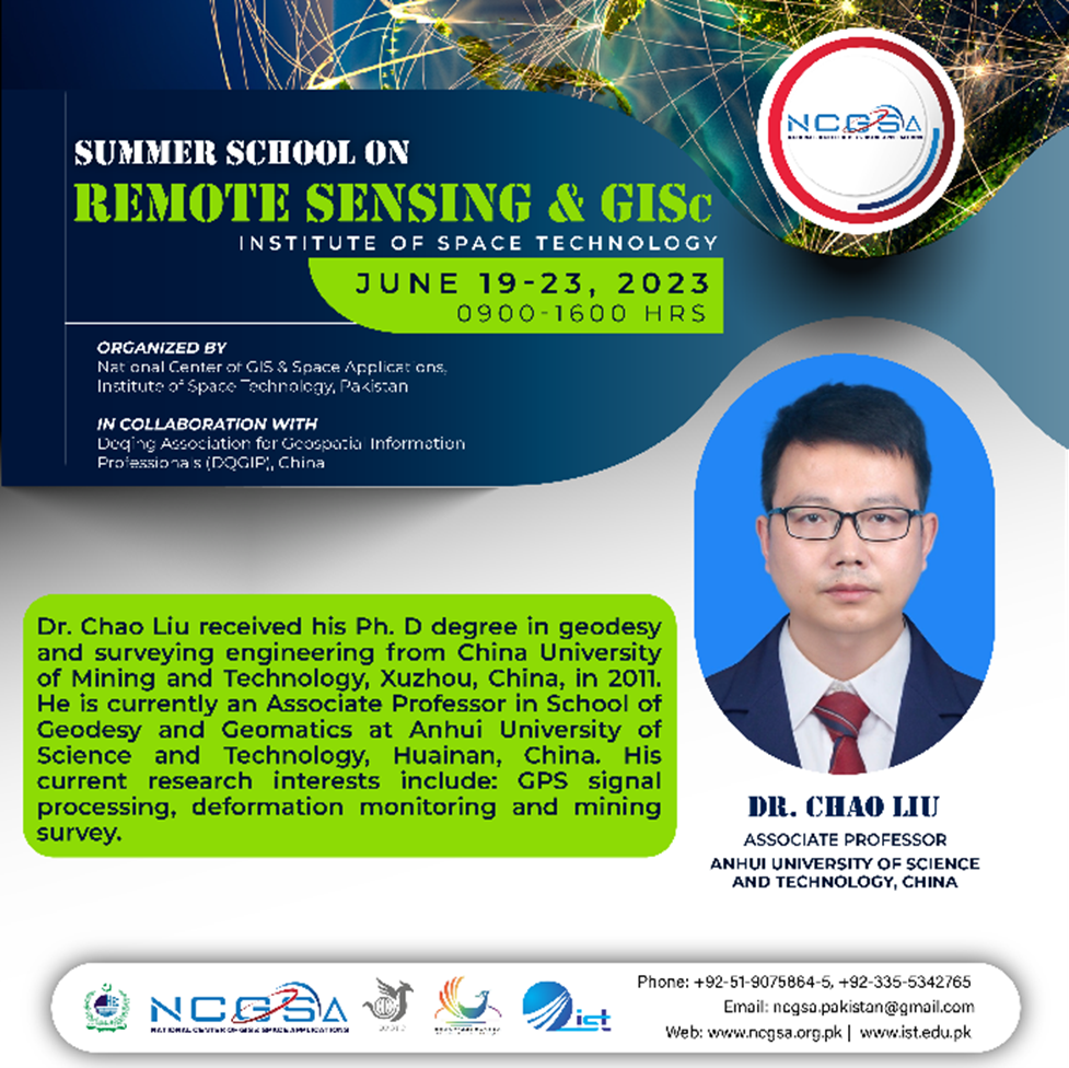 2023年6月19-23日,由巴基斯坦空间技术学院国家地理信息系统与空间技术应用中心(The National Center of GIS and Space Applications(NCGSA), Institute of Space Technology(IST), Islamabad, Pakistan)与中国科协“一带一路”地理信息国际培训中心(德清地理信息小镇科技工作者学会)联合主办的巴基斯坦“遥感与地理信息暑期学校”在巴基斯坦伊斯兰堡圆满举行,来自巴基斯坦各地与遥感地理信息相关的高校、企业和政府部门共100余位专业人士参加了本期暑期学校,这是巴基斯坦与中国在遥感与地理信息领域的首次较大规模的培训教育合作项目。