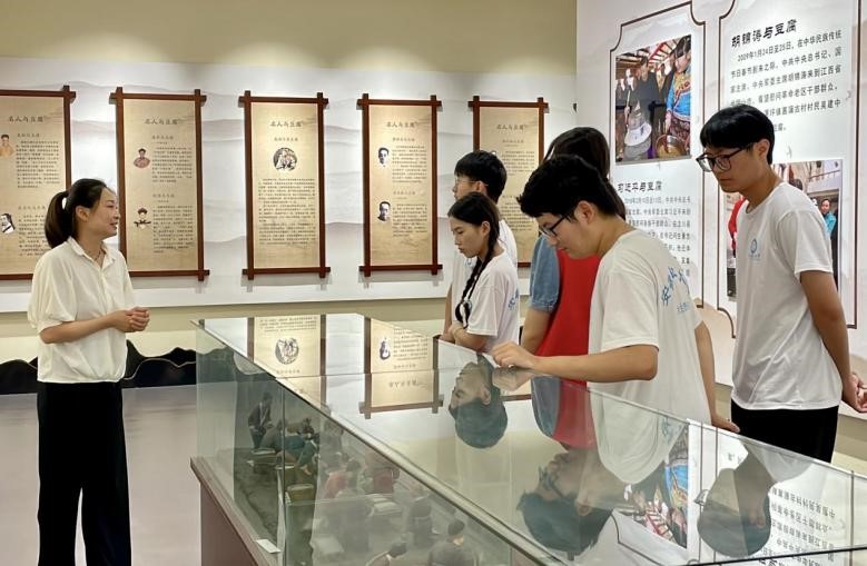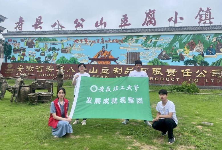 在中国豆腐主题文化园,队员们沉浸在豆腐文化的丰富历史之中。通过参观文化园,他们深入感受到豆腐产业的博大精深,以及豆腐在中国人日常生活中的重要地位。豆腐作为重要的特色产业,为乡村振兴作出了重要贡献。他们表示要将这一独特的传统产业传承发扬,让更多人了解和喜爱这一中国特色的食品文化。团队成员周乐说:“通过参观豆腐的发源和历史,我深刻认识到特色产业对于乡村振兴的意义,我们要积极参与特色产业的发展,为乡村振兴贡献自己的力量。”