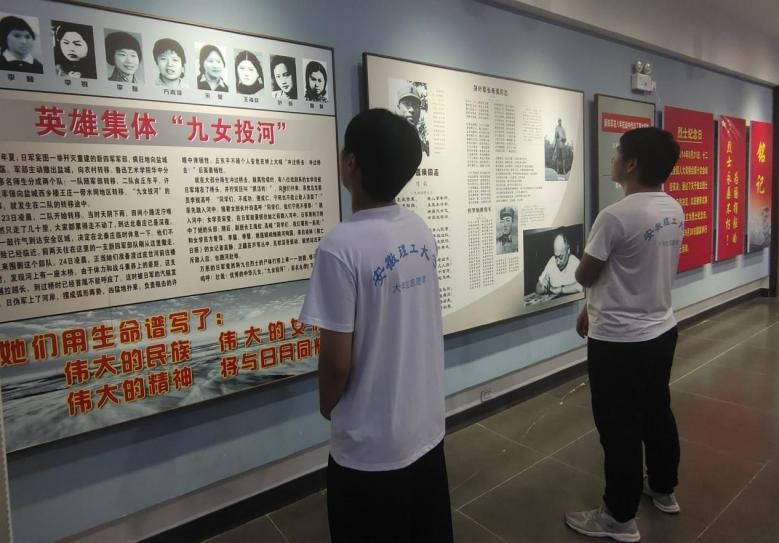 在淮南市日寇侵华罪行遗址,队员们目睹了残暴的日本监工无情压榨矿工的种种罪证。一张铭刻历史印记的老照片穿过岁月,无声地控诉着日本侵略者的暴行,也昭示着历史的沉重和警醒。在淮南市新四军纪念林陈列馆,队员们仔细观看一件件真实的新四军抗战物品,聆听“九女投河”等一个个感人的英雄事迹,学习新四军建立、壮大的发展史,了解新四军抗击日寇、保家卫国的光荣史。