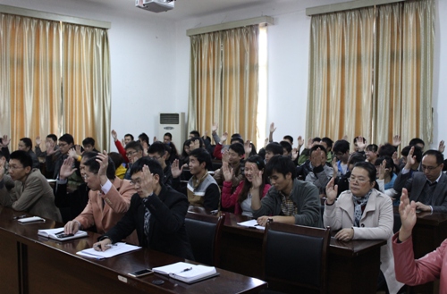 会上,陈艺首先传达了学校党委关于校第六次党代会代表选举工作的有关文件精神,宣读了学校党委关于必赢线路检测3003no1代表候选人的批复,介绍了学院选举党员代表的准备工作、代表候选人提名推荐经过和代表候选人的基本情况,表决通过了大会选举办法和监票人名单,并按照规定程序进行了选举。