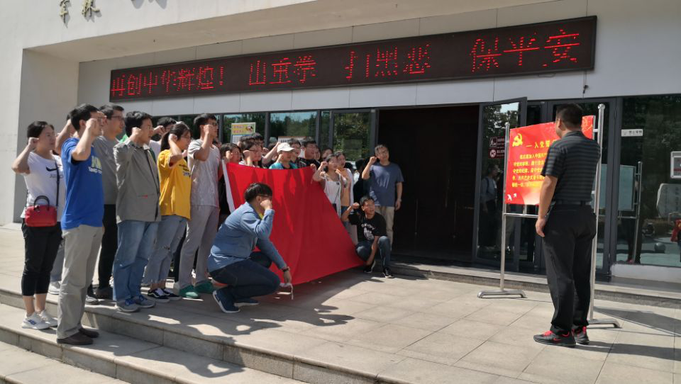 参观结束后,面对鲜红的党旗,在李霜老师的领誓下,全体党员高举右手,用铿锵有力的声音重温了入党誓词,表达了坚定理想信念,忠实履行党员义务,全心全意为人民服务,做一名有志有为共产党员的决心。