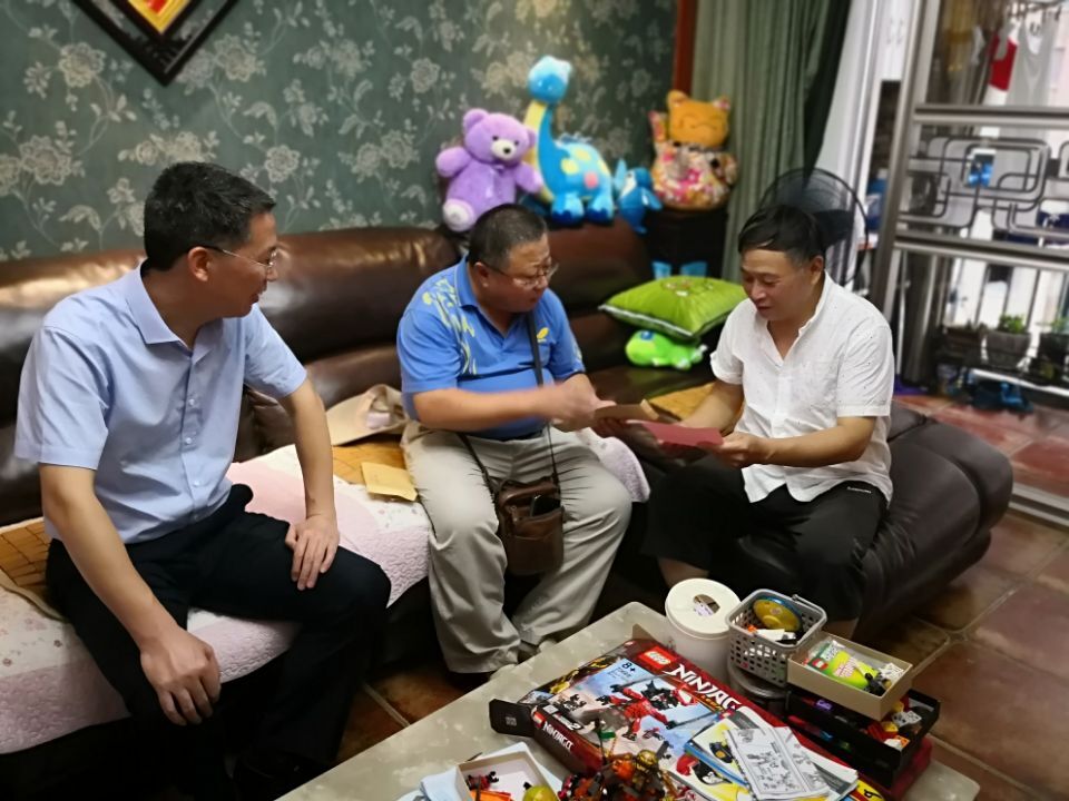 7月2日,必赢线路检测3003no1党委书记吴军,院长赵志根等一行三人来到英伦联邦小区,看望慰问了退休老党员韦书东老师并送去了组织的温暖。