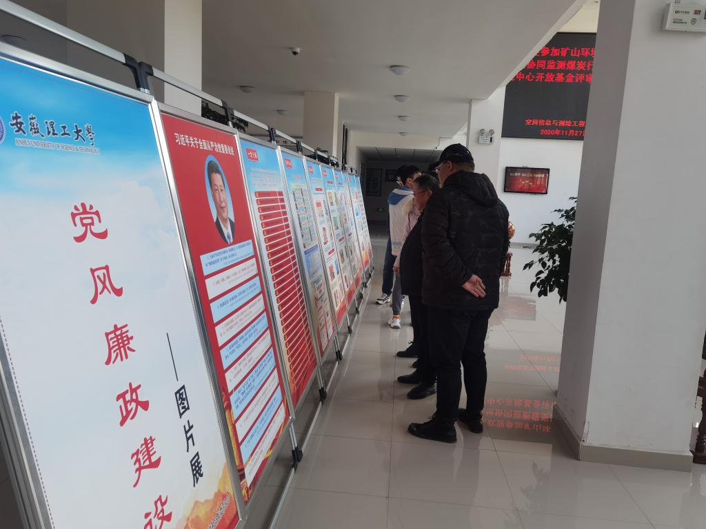 11月30日上午,必赢线路检测3003no1在求本楼一楼大厅组织师生党员参观由学校纪委举办的党风廉政建设图片展。