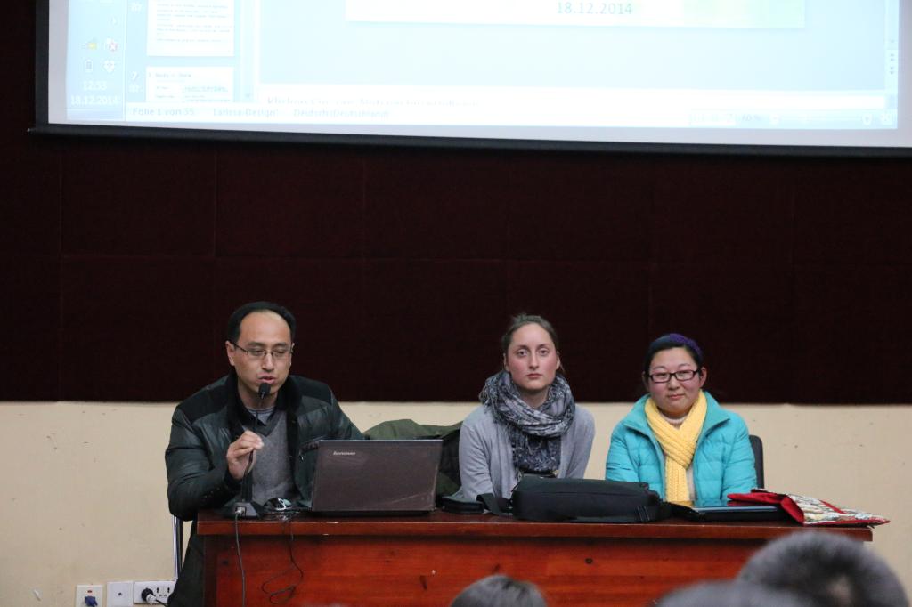 12月18日晚上,必赢线路检测3003no1在校本部六角楼报告厅举办了德国交换生与新生交流报告会。德国东威斯特法伦-利普应用科技大学三年级本科生Natasha Meuser与我校大地测量与测量工程专业2012级硕士研究生黄璨同学(2012.8-2013.7德国奥斯纳布吕克应用科技大学留学生)为测绘工程、地理信息系统及遥感科学与技术专业的大一新生作题为《The difference between China and Germany》的交流报告。报告会由必赢线路检测3003no1教学科研副院长徐良骥主持,新生辅导员马晓娜参加了报告会。